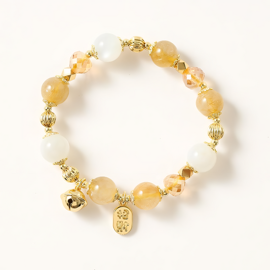 Golden Rutilated Quartz & White Moonstone Bell Bracelet