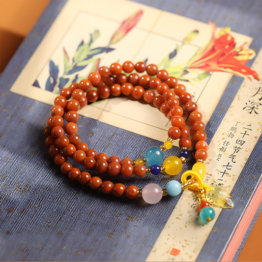 Three-Layer South Red Agate & Beeswax Amber Pendant Bracelet