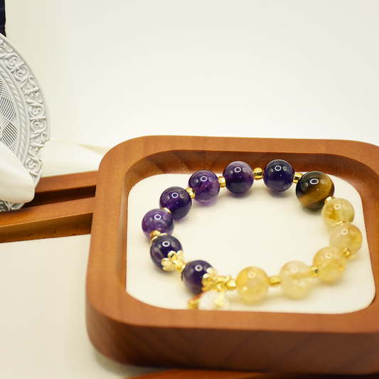 Wealth-Attracting Citrine, Amethyst & Tiger’s Eye Bracelet