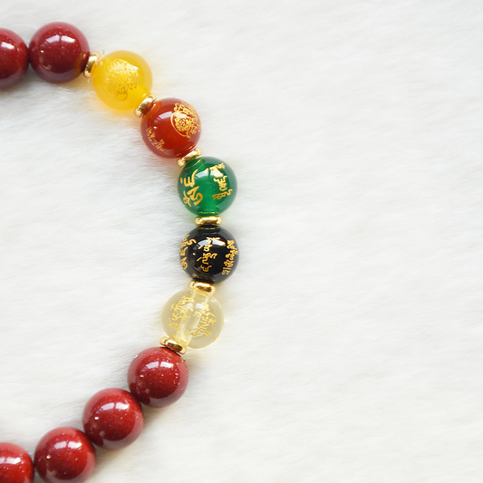 Five Wealth Gods Cinnabar and Agate Bracelet