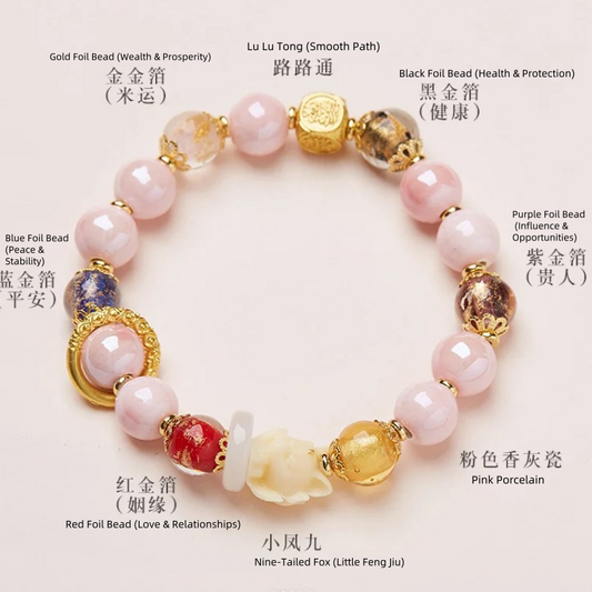 Nine-Tailed Fox Pink Porcelain Five-Colored Gold Ring Bracelet